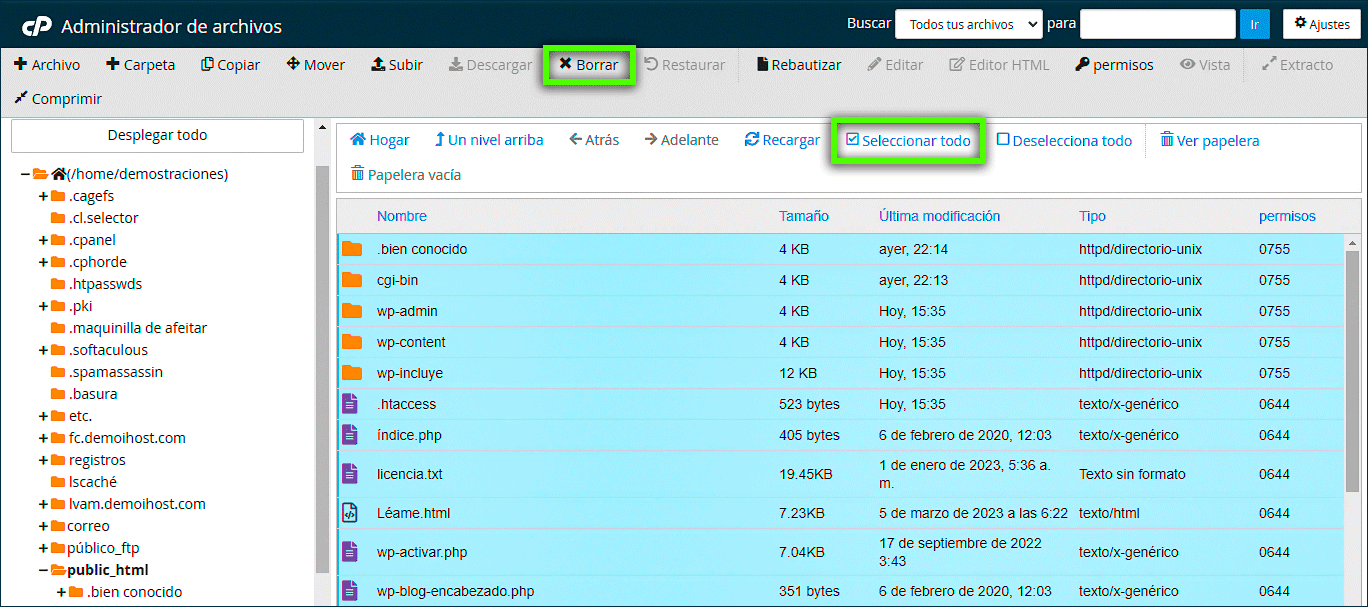 2. Dentro del Administrador de archivos, ubique la raíz o directorio del documento del dominio.