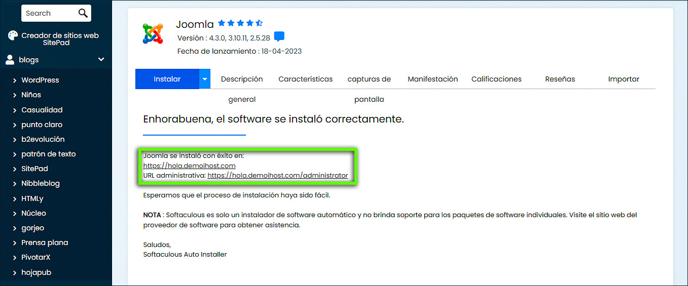 Este artículo lo guiará en la instalación de Joomla con Softaculous.