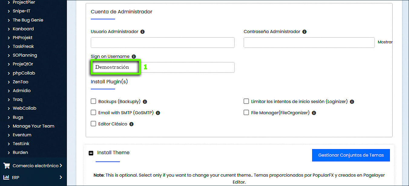 Si necesita modificar algunos de estos detalles de instalación puede realizar desde este apartado.