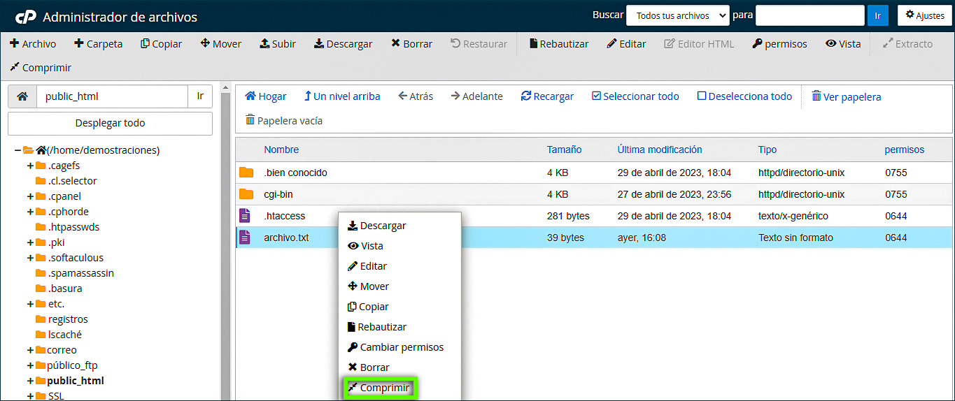 Puede cargar sus archivos directamente a través de cPanel usando el Administrador de archivos. El Administrador de archivos es una interfaz web que le permite administrar todos los archivos asociados con su cuenta.